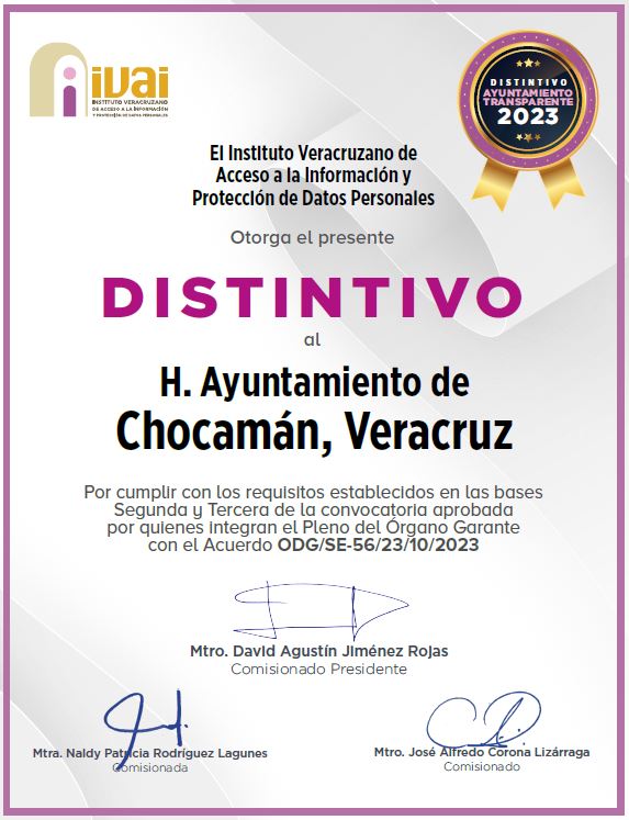 La Unidad de Acceso a la Información Publica del Honorable Ayuntamiento de Chocamán, Veracruz, es la instancia administrativa que se encarga de recibir y dar trámite a las solicitudes de información pública, así como de garantizar la entrega de la información, según la resolución de la misma, de conformidad con los términos de la Ley de Transparencia y Acceso a la Información Pública. (Marco legal: Art. 29 de la ley de transparencia y acceso a la información pública para el Estado de Veracruz de Ignacio de la Llave).